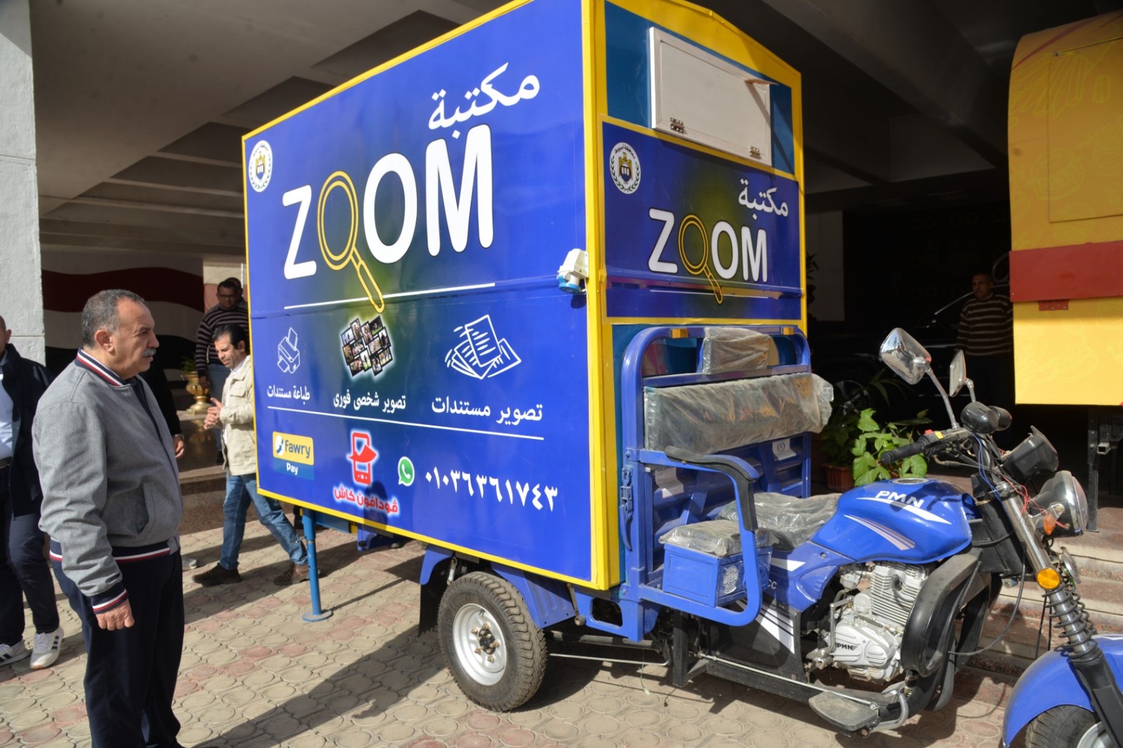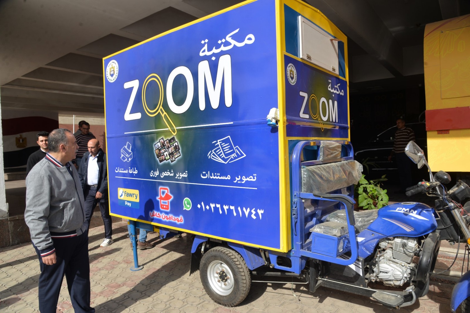 وقام محافظ أسيوط بتسليم المشروع إلى الشاب الخريج أبادير سامي دميان، حيث تم تنفيذ المكتبة المتنقلة من خلال الهيئة العربية للتصنيع، في إطار بروتوكول التعاون الموقع بين محافظة أسيوط والهيئة، والذي يستهدف توفير وسائل تشغيل متنوعة ومناسبة للشباب، وفتح آفاق جديدة لإقامة مشروعات إنتاجية وخدمية مستدامة.