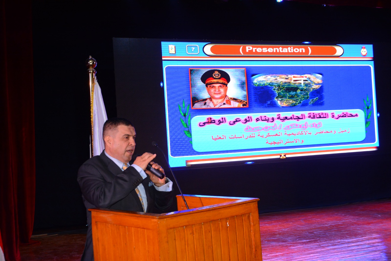 كما تناول اللواء أيمن جبريل الهدف من الحروب التقليدية وحروب الجيل الرابع والخامس، مستعرضًا الأساليب التي تعتمد عليها هذه الحروب المستحدثة، والتي تقوم على الإرهاب، وشن الحرب النفسية، والشائعات، ونشر المخدرات، والفساد، والفوضى الإدارية بالدولة، بالإضافة إلى استغلال التفرقة الدينية والعرقية، وإظهار ضعف الدولة على إدارة البلاد، موضحًا أن التوعية هي أساس التصدي لهذه الحروب من خلال وضع خطط مضادة ترتكز على فئة الشباب وتستهدف تصحيح المفاهيم المغلوطة.