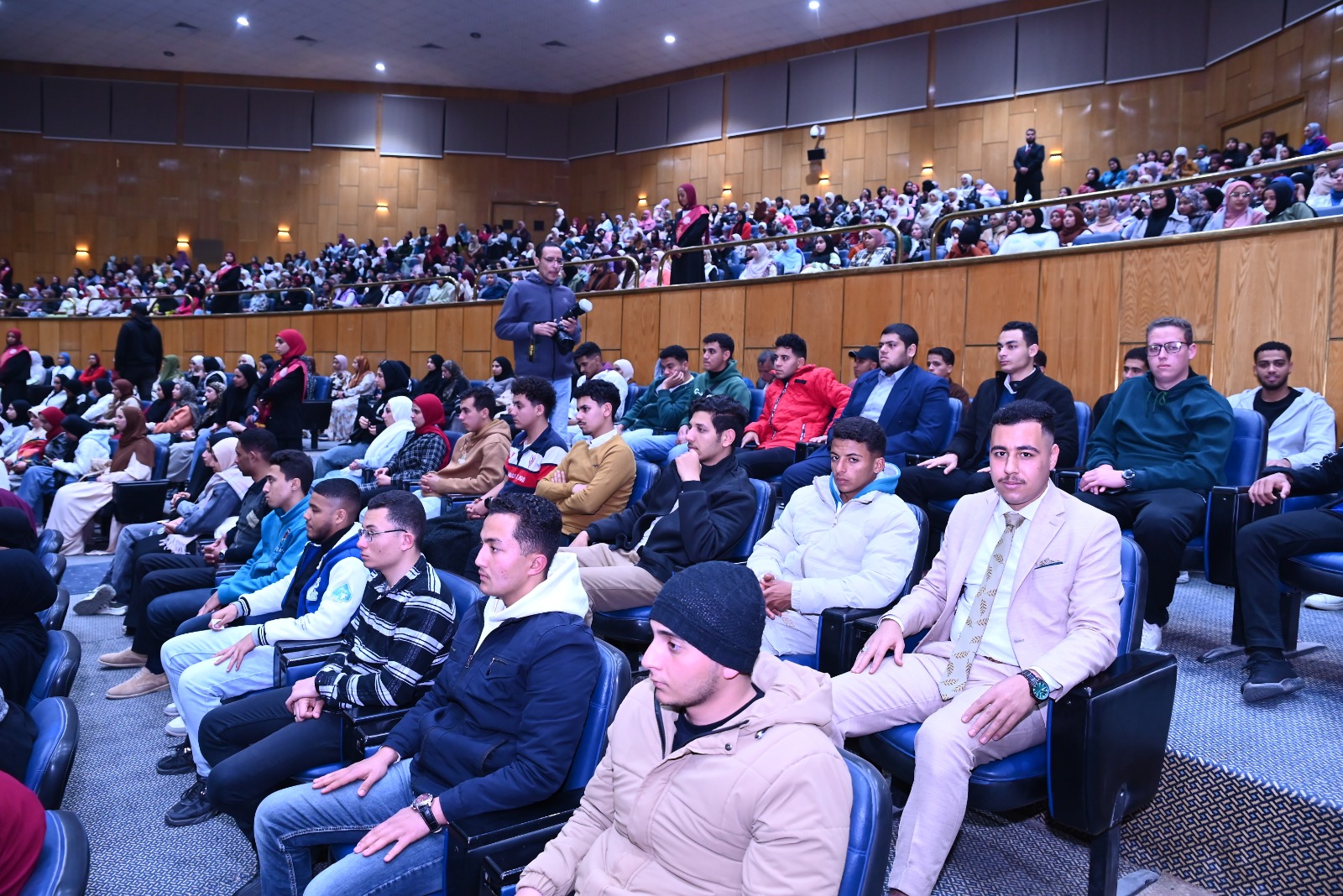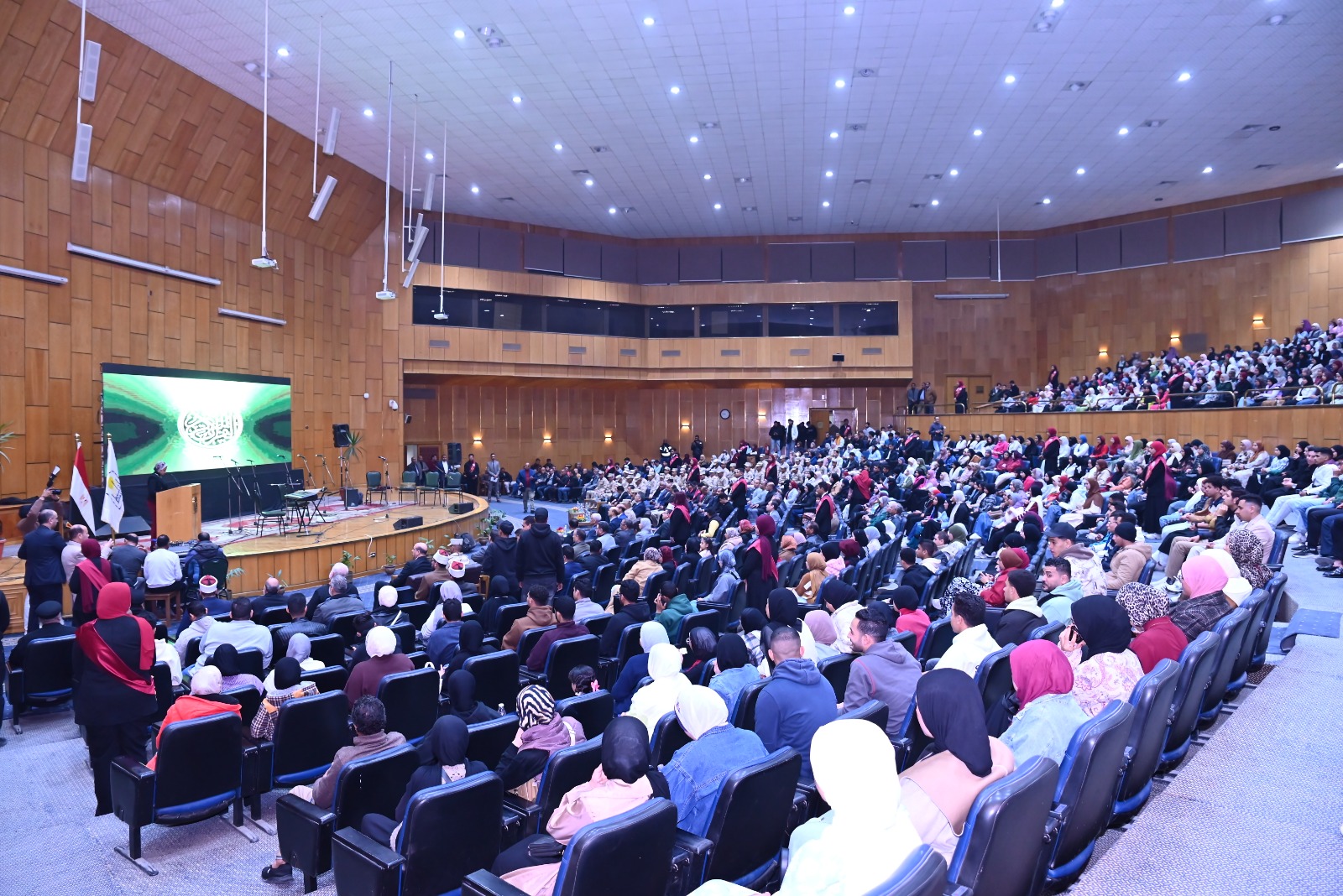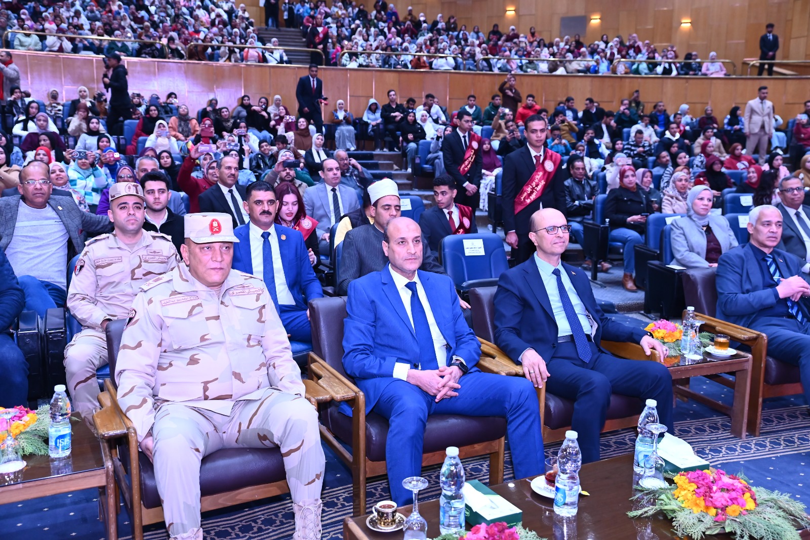 وشهدت الاحتفالية حضور الدكتور أحمد عبد المولى نائب رئيس الجامعة لشئون التعليم والطلاب، إلى جانب عدد من قيادات الجامعة والمحافظة وممثلي المؤسسات الدينية، وحشدٍ طلابي من مختلف الكليات، وذلك بتنظيم "أسرة طلاب من أجل مصر"، تحت إشراف الدكتورة مديحة درويش، المشرف العام على الأنشطة الطلابية ومنسق عام الأسرة.