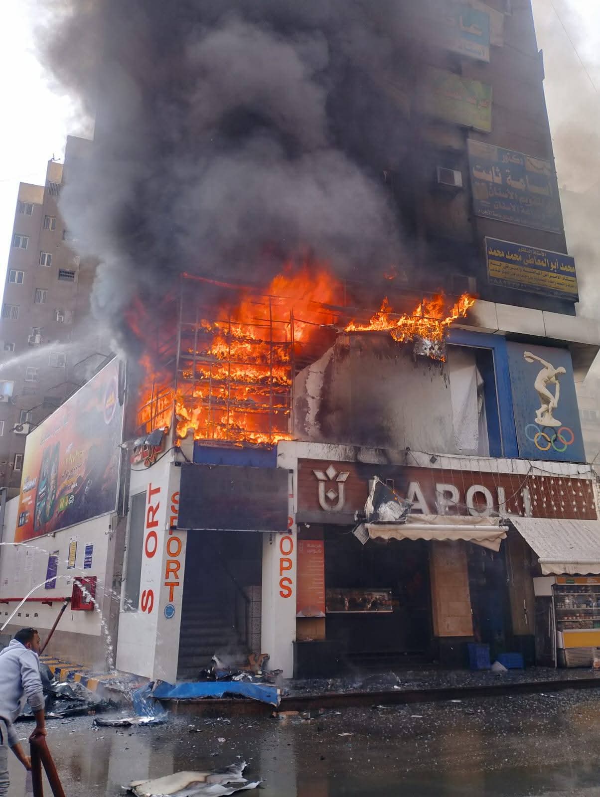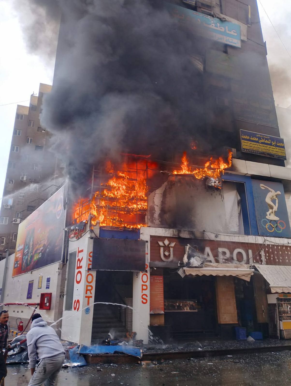 التمكن من إخماد حريق بمحل ملابس وأحذية رياضية بشارع 23 يوليو بأسيوط دون أصابات