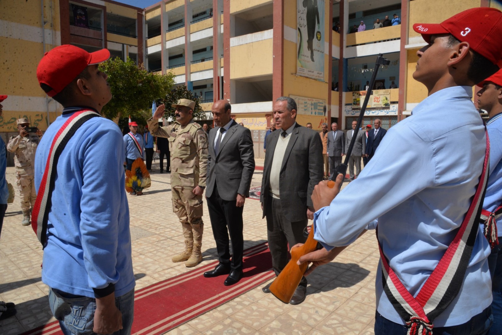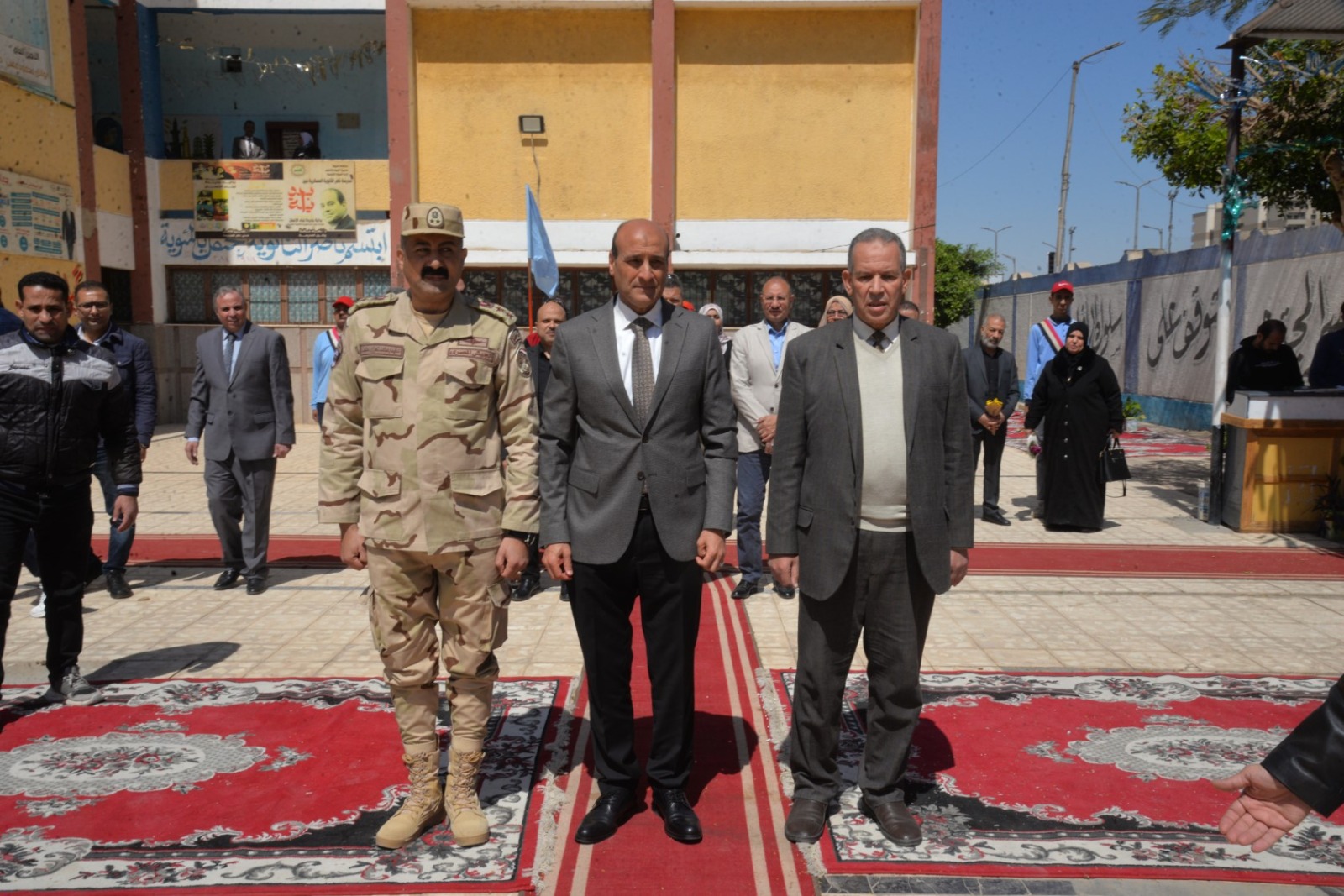 وشهد المحافظ طابور العرض الصباحي بالمدرسة، كما تضمن برنامج الحفل تلاوة آيات من القرآن الكريم للطالب زياد عبد الرحيم، أعقبها كلمة عن ذكرى يوم الشهيد ألقاها العقيد معمر محمد فكري قائد المدرسة، استعرض خلالها بطولات شهداء الوطن وتضحياتهم في سبيل حماية مصر والحفاظ على أمنها واستقرارها.