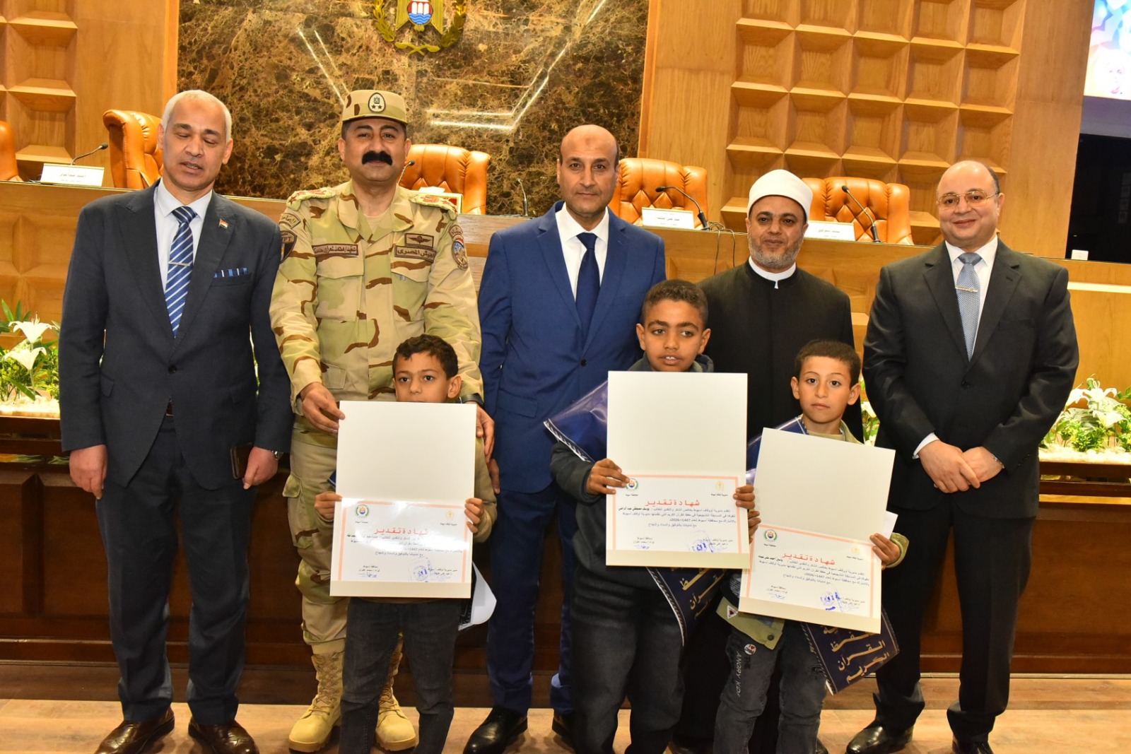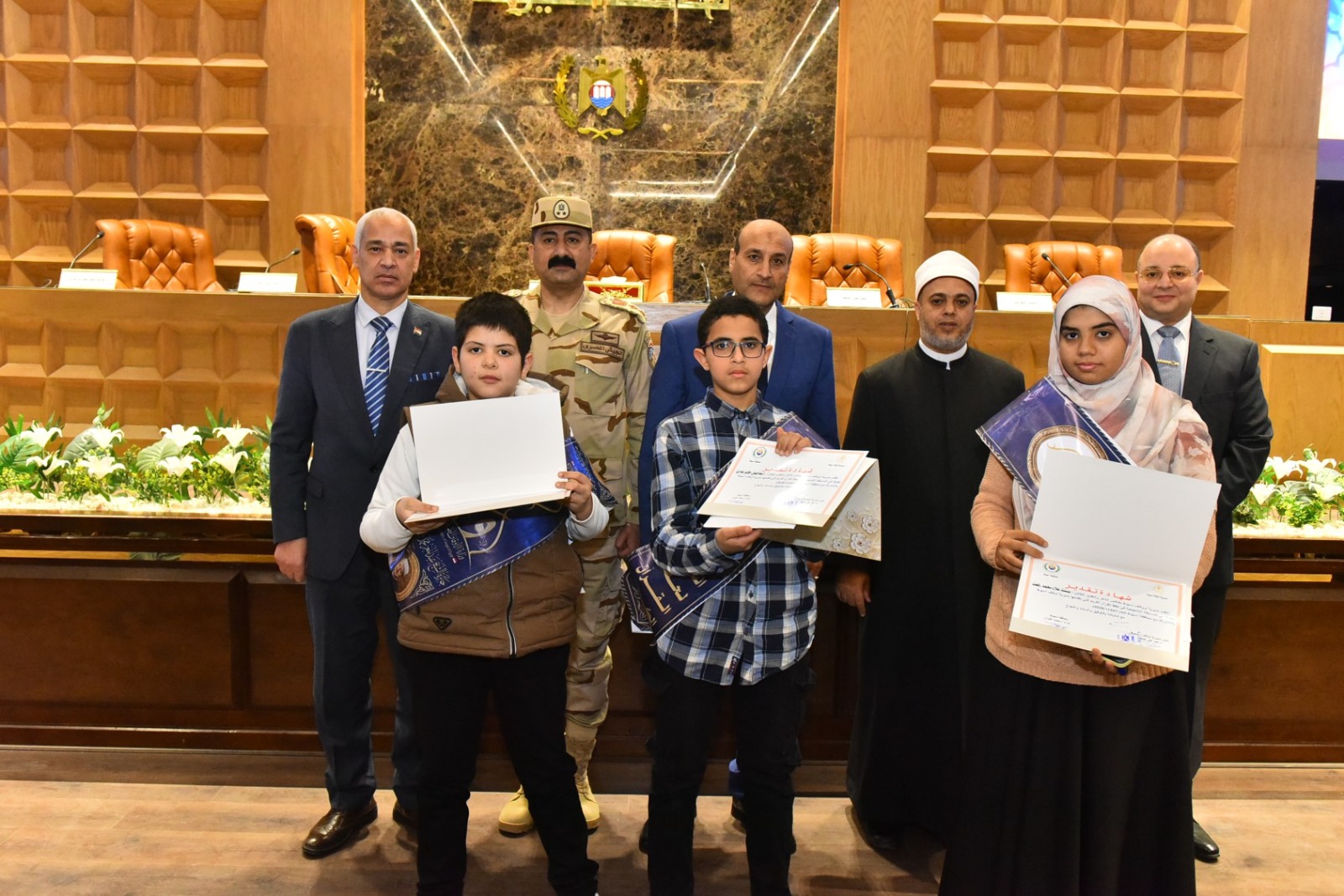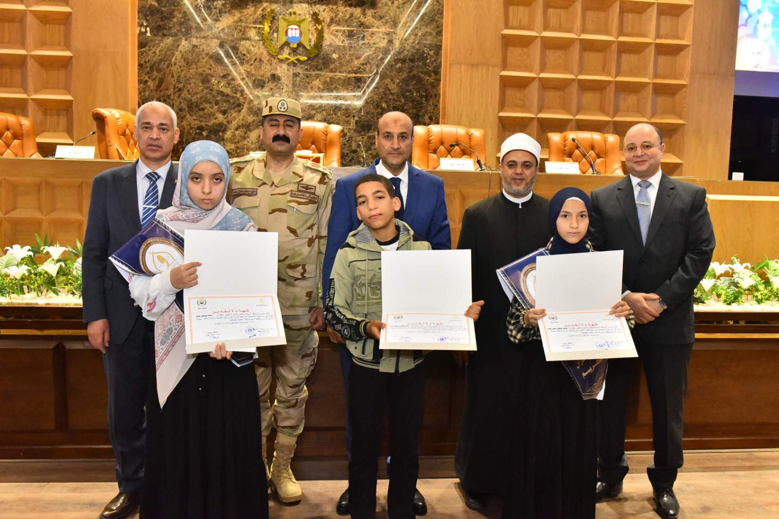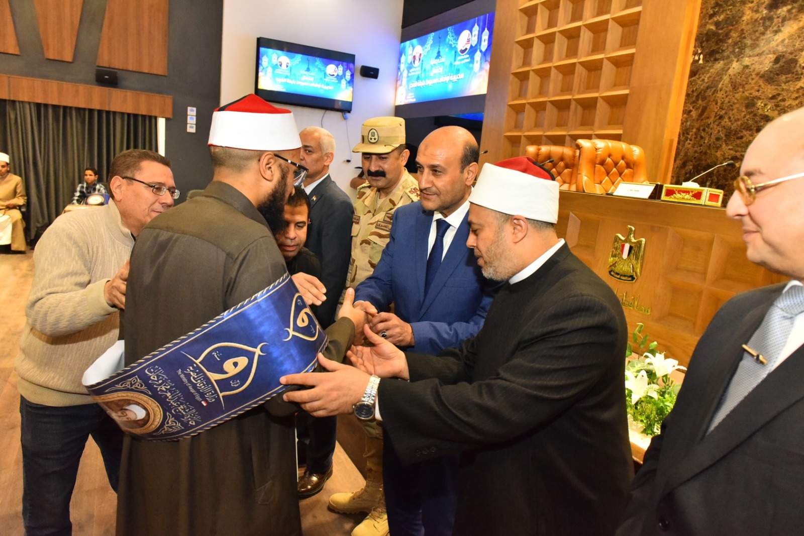 وفي ختام الاحتفالية، قام المحافظ بتكريم 17 فائزًا في مسابقة حفظ القرآن الكريم، التي شملت خمسة مستويات للحفظ، تبدأ بحفظ القرآن كاملًا ثم ثلاثة أرباعه ونصفه وربع القرآن، حيث تم منحهم شهادات تقدير ومكافآت مالية، إلى جانب إتاحة الفرصة لهم للمشاركة في برنامج "دولة التلاوة" في موسمه الثاني، كما كرم المحافظ 12 فائزًا في مسابقة "الحناجر الذهبية"، التي تهدف إلى اكتشاف الأصوات المتميزة في تلاوة القرآن الكريم والإنشاد الديني.