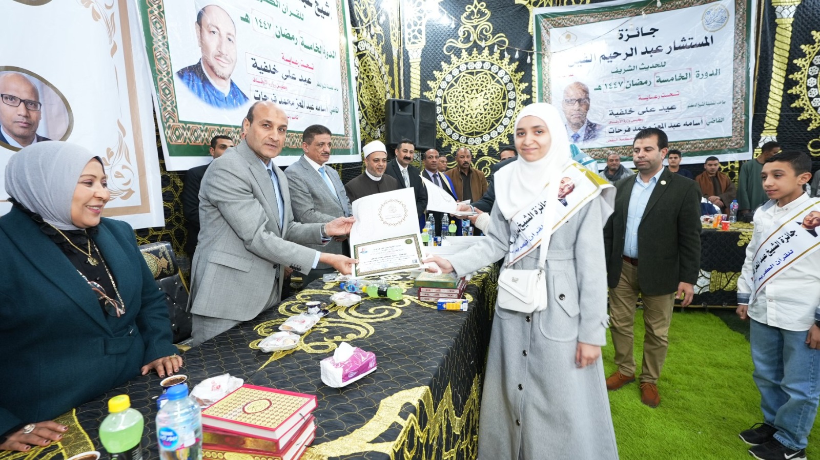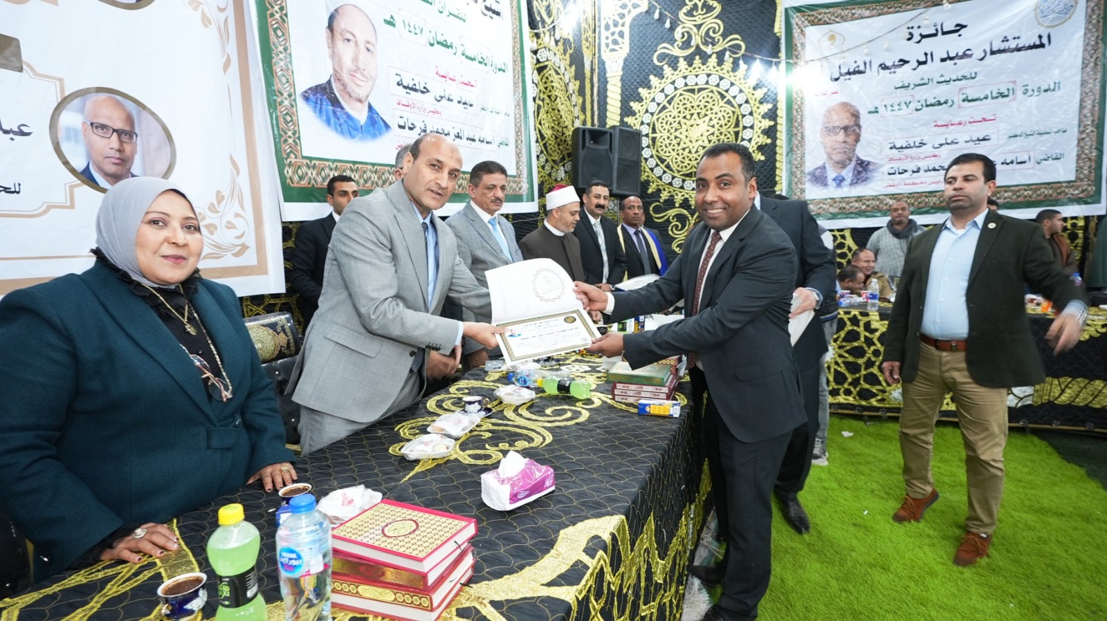 كما شهد الحفل تكريم الفائزين في مسابقة القرآن الكريم بمستوياتها المختلفة، والتي ينبثق عنها جائزة المستشار عبد الرحيم الفيل للحديث الشريف، إلى جانب إطلاق جائزة الشيخ عبد الجابر عبد البديع فرحات للأصوات الندية في نسختها الأولى.