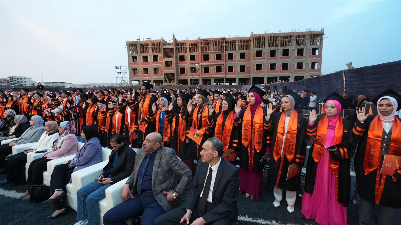 بدأت فعاليات الحفل بعزف السلام الجمهوري وتلاوة آيات من القرآن الكريم، أعقبها مراسم تخريج طلاب كليات طب الفم والأسنان، والصيدلة، وتكنولوجيا العلوم الصحية التطبيقية، في حدث يعد انطلاقة حقيقية لمسيرة الجامعة الأكاديمية، وإسهامًا في إعداد كوادر مؤهلة تمتلك مهارات علمية وعملية تواكب متطلبات سوق العمل، حيث تضمنت الاحتفالية تسليم شهادات التخرج للطلاب، وسط فرحة عارمة من أسرهم، وأداء الخريجين القسم، إلى جانب تكريم أوائل الدفعة.