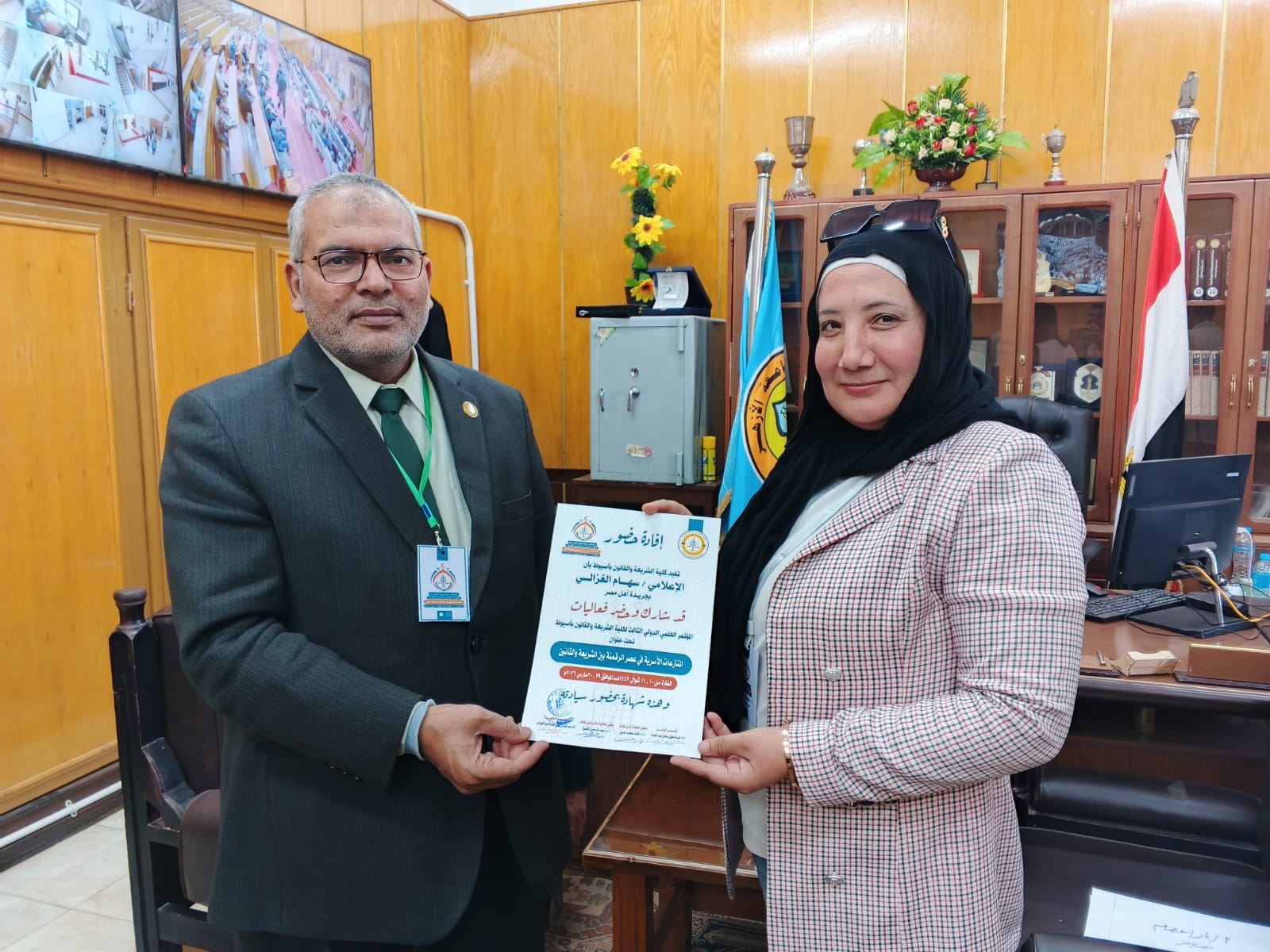 عميد كلية الشريعة والقانون بأسيوط يكرم الزميل محمود العسيري تقديرا لجهوده في تغطية مؤتمر المنازعات الأسرية في عصر الرقمنة