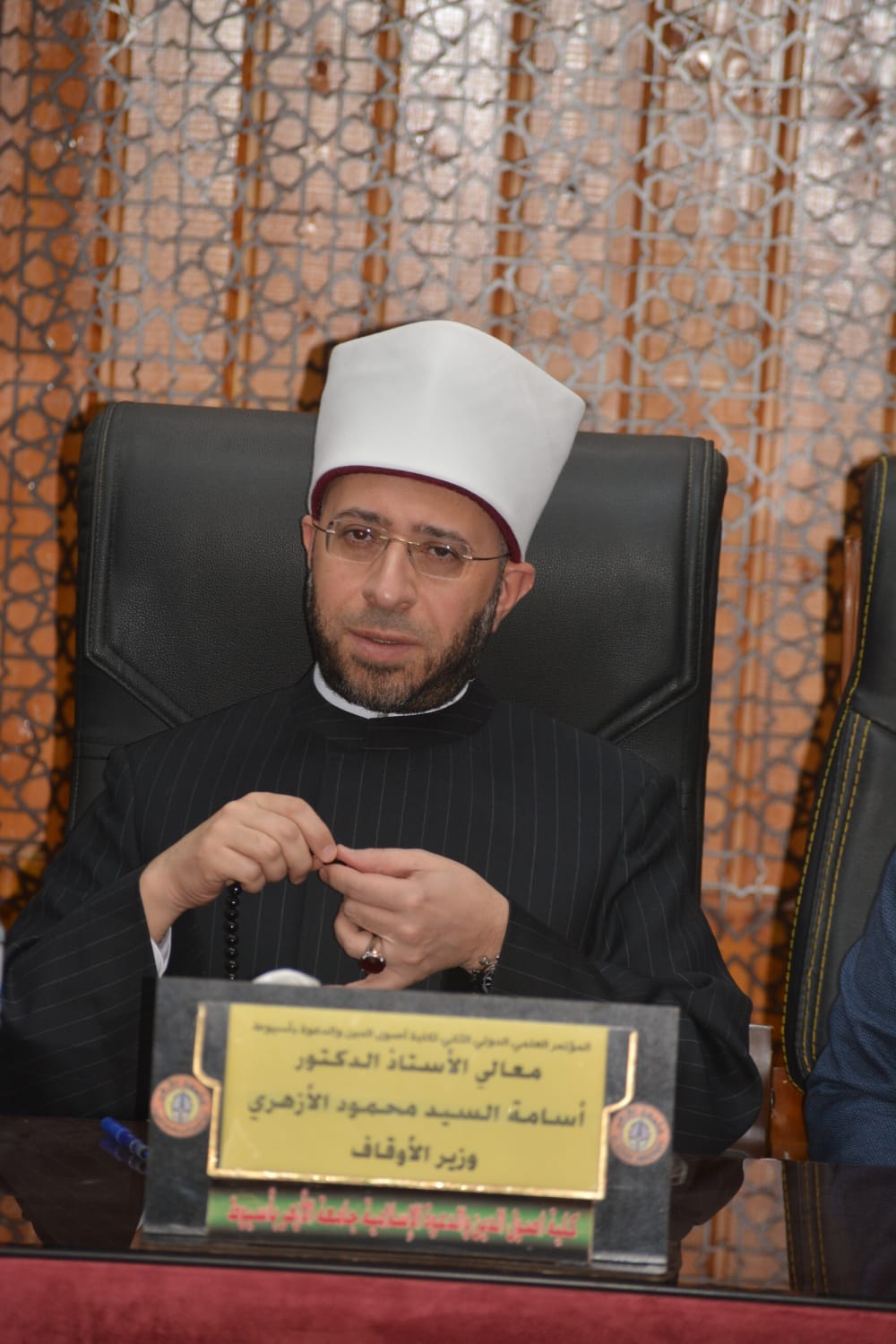 ثم تحدث ضيف شرف المؤتمر معالي الأستاذ الدكتور أسامة الأزهري، وزير الأوقاف، وابن كلية أصول الدين والدعوة بأسيوط النابغ البار،