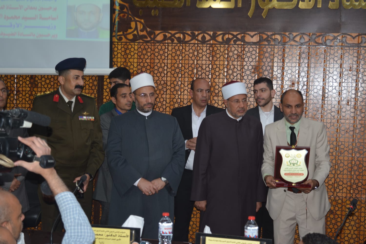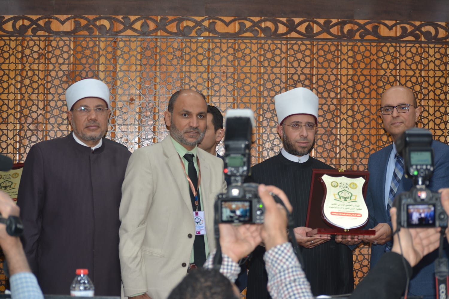 فى الختام تم تقديم الدروع التذكارية للمؤتمر لوزير الأوقاف ولعدد من السادة الضيوف، تقديرا لتشريفهم المؤتمر.