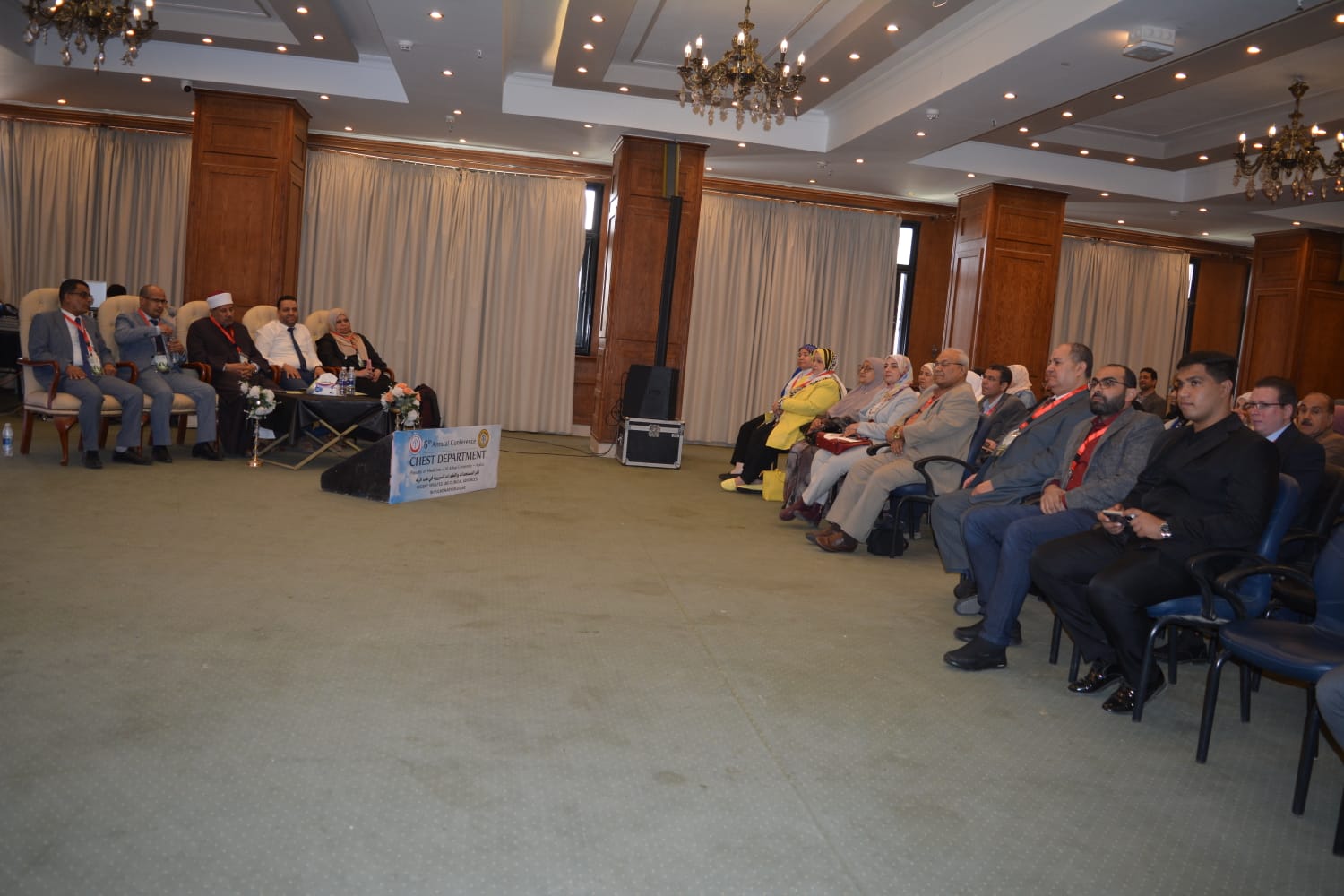 وفي كلمته، رحب الأستاذ الدكتور هيثم عبد الله، رئيس قسم الأمراض الصدرية ورئيس المؤتمر، بالسادة الضيوف والحضور، معرباً عن سعادته بانعقاد هذا الحدث العلمي الذي يجمع كوكبة من المتخصصين لتبادل الخبرات ومناقشة أحدث ما توصل إليه العلم في مجال أمراض الجهاز التنفسي. وأوضح أن المؤتمر يهدف إلى استعراض أحدث المستجدات العلمية والتطورات الإكلينيكية، ومواكبة الإرشادات الطبية العالمية، إلى جانب تنمية المهارات التشخيصية والعلاجية للأطباء، ومناقشة التحديات الإكلينيكية وربطها بالدليل العلمي، بما يسهم في تحسين جودة الرعاية الصحية.