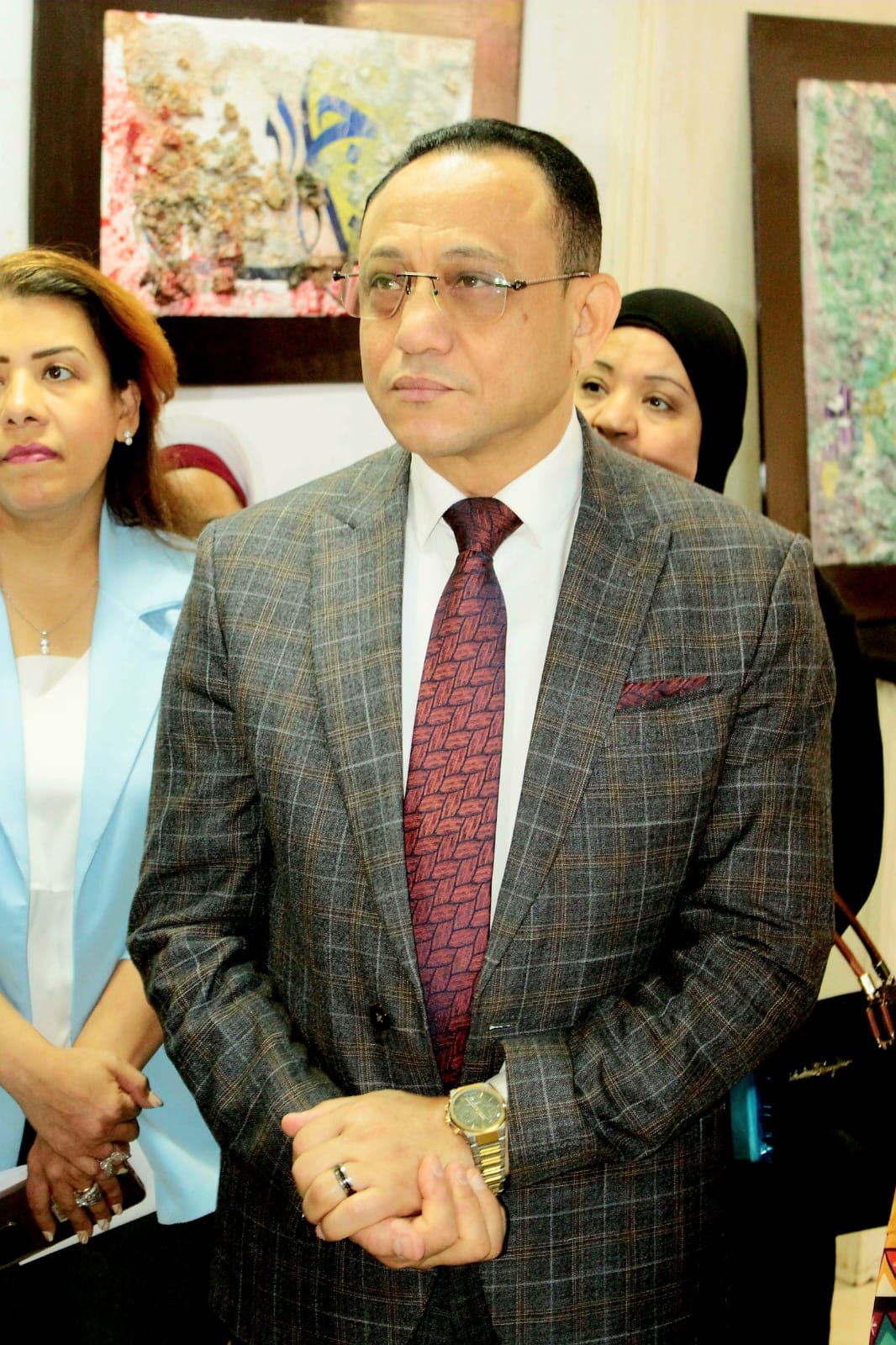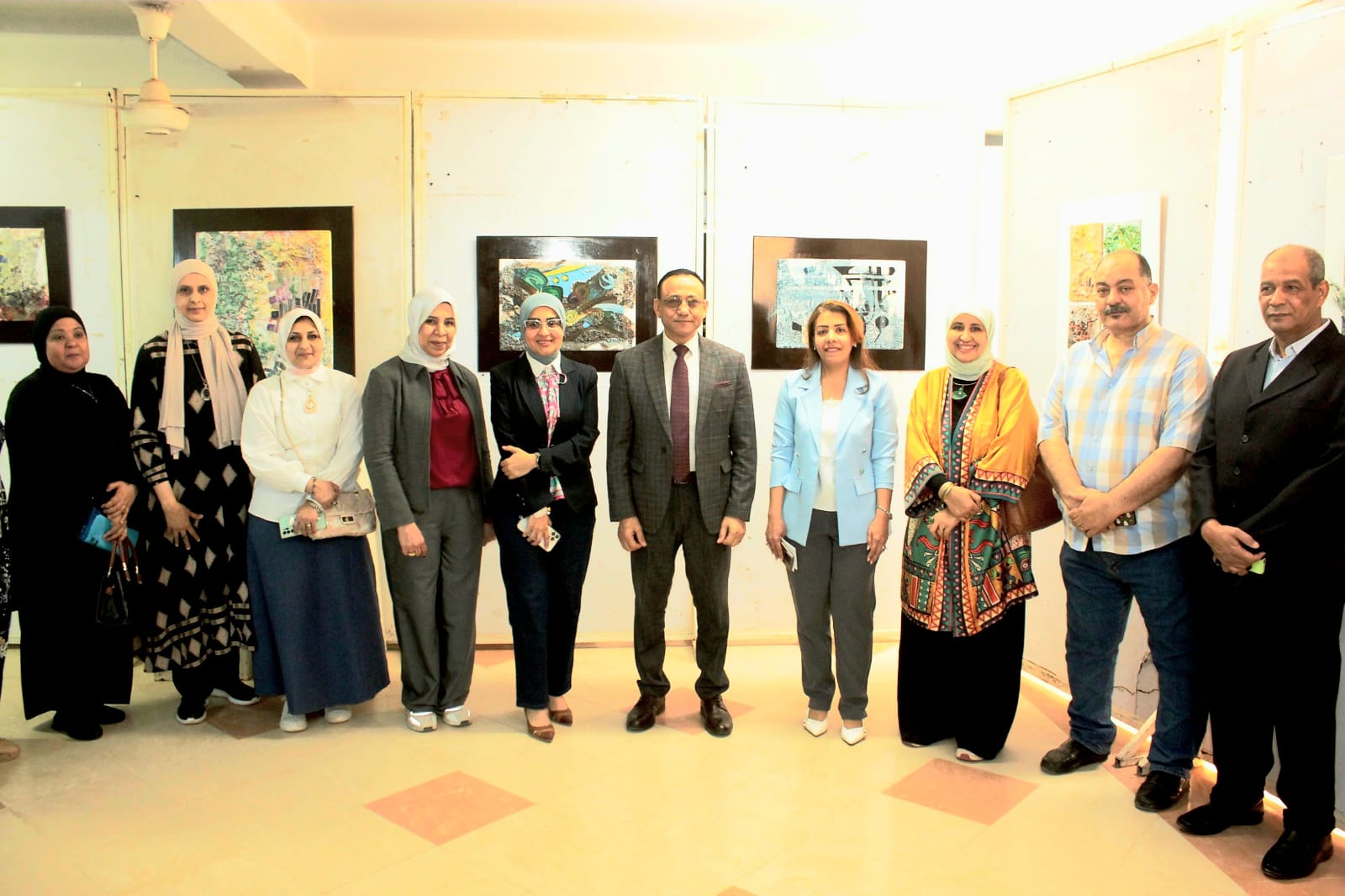 وخلال جولته بالمعرض، أشاد الدكتور جمال بدر بالمستوى الفني المتميز للأعمال المعروضة، مؤكدًا أنها تعكس كفاءة علمية وفنية رفيعة، وتبرز أهمية توجيه مخرجات الكليات الفنية لخدمة المجتمع. كما اقترح تنفيذ لوحات فنية موجهة للأطفال، مستوحاة من خامات المعرض، لتزيين حضانات الجامعة بأسلوب إبداعي جاذب.