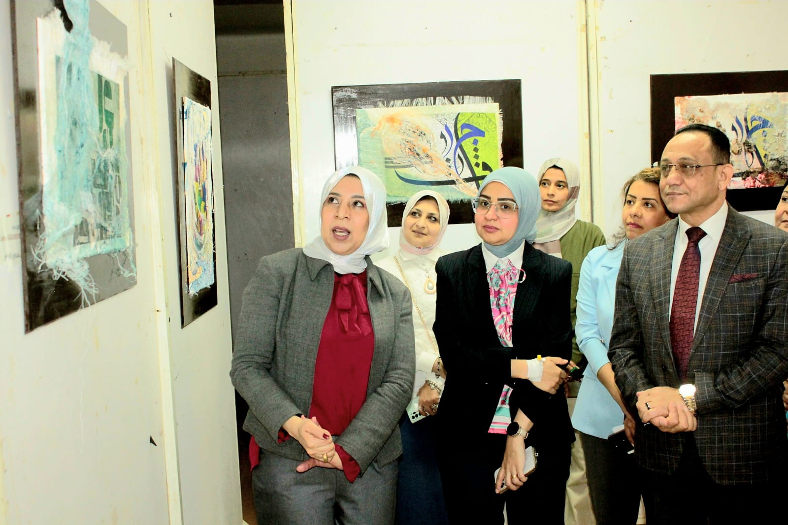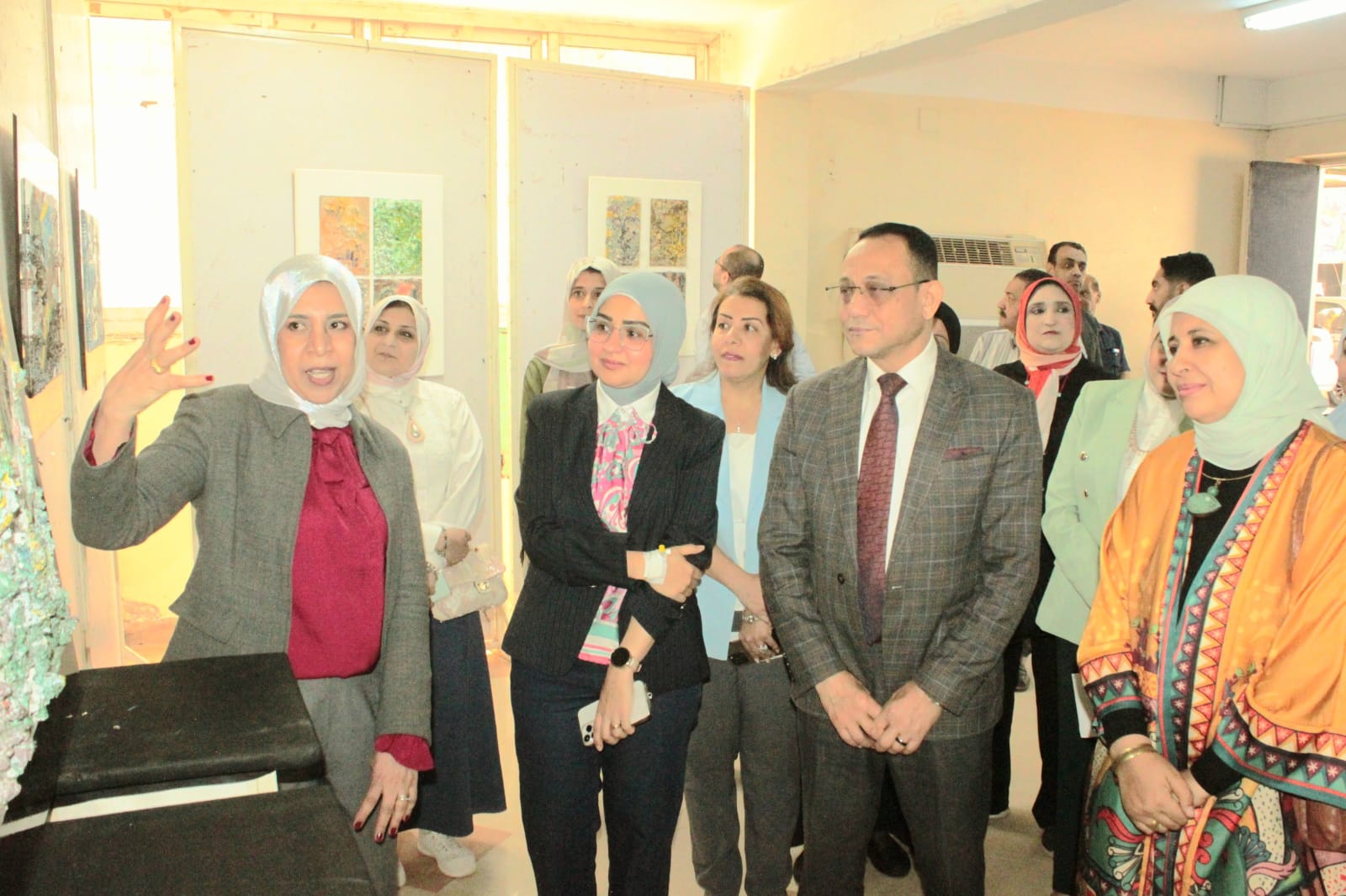 جاء تنظيم المعرض تحت إشراف الدكتورة ياسمين الكحكي، عميد كلية التربية النوعية، والدكتورة ناريمان سعيد إسحق، وكيل الكلية لشئون الدراسات العليا والبحوث، والدكتورة هالة صلاح الدين، رئيس قسم التربية الفنية، وبحضور الدكتورة دعاء عبدالمحسن، وكيل الكلية لشئون التعليم والطلاب، والدكتور محمد عبدالباسط، وكيل الكلية لشئون البيئة وتنمية المجتمع، إلى جانب الدكتور وجدي رفعت نخلة، عميد الكلية الأسبق، وعدد من المهتمين بالحركة الفنية داخل الجامعة.