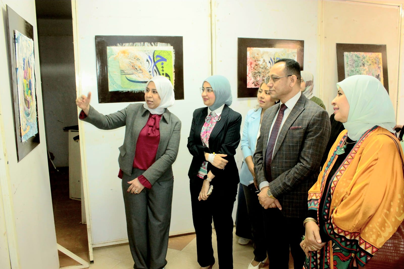 ويُقام المعرض بقاعة العرض الرئيسية بالكلية، ويستمر لمدة سبعة أيام، ضمن مناقشة الإنتاج العلمي والفني للترقية إلى درجة الأستاذية، في خطوة تعكس اهتمام الجامعة بدعم الإبداع الفني وربطه بالمسار الأكاديمي.