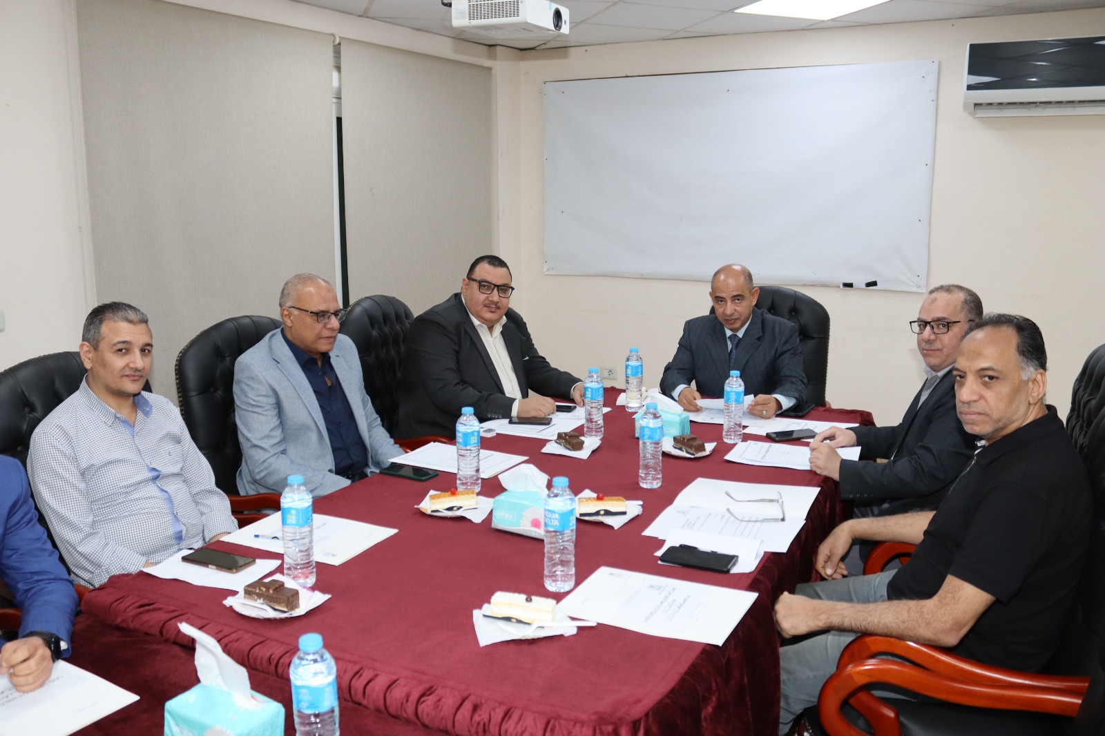 حضر الاجتماع كلٌّ من: الأستاذ وليد حسني، مدير عام الحسابات والموازنة، والأستاذ خالد محمد سيد، مدير دار الإقامة بالدقي، والأستاذ هشام محرم محمد، مدير دار الإقامة بالقصر العيني، الأستاذ أحمد محمد عواد سكرتير الجلسة.