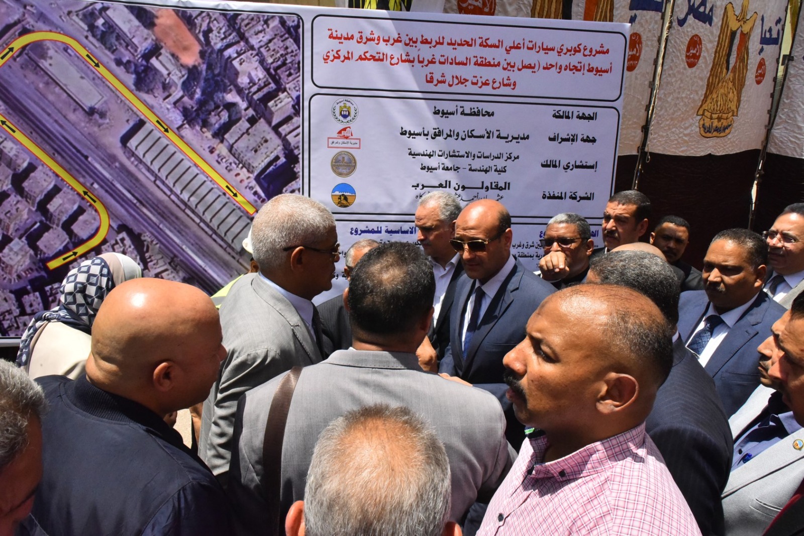 محافظ أسيوط يضع حجر الأساس لكوبري سيارات جديد أعلى السكة الحديد بمنطقة السادات لربط شرق وغرب المدينة وتقليل الاختناقات المرورية