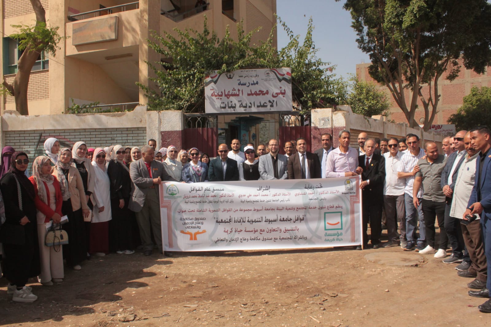 وجاءت القافلة بالتعاون مع مؤسسة حياة كريمة، وصندوق مكافحة وعلاج الإدمان والتعاطي، ومديرية الصحة بأسيوط، ومديرية الطب البيطري بأسيوط، ومديرية التربية والتعليم بأسيوط، ومديرية الزراعة بأسيوط، ووحدة مكافحة الآفات المنزلية بجامعة أسيوط، ومركز رصد ودراسة المشكلات المجتمعية بجامعة أسيوط، في نموذج يعكس تكامل الجهود لخدمة المجتمع المحلي.