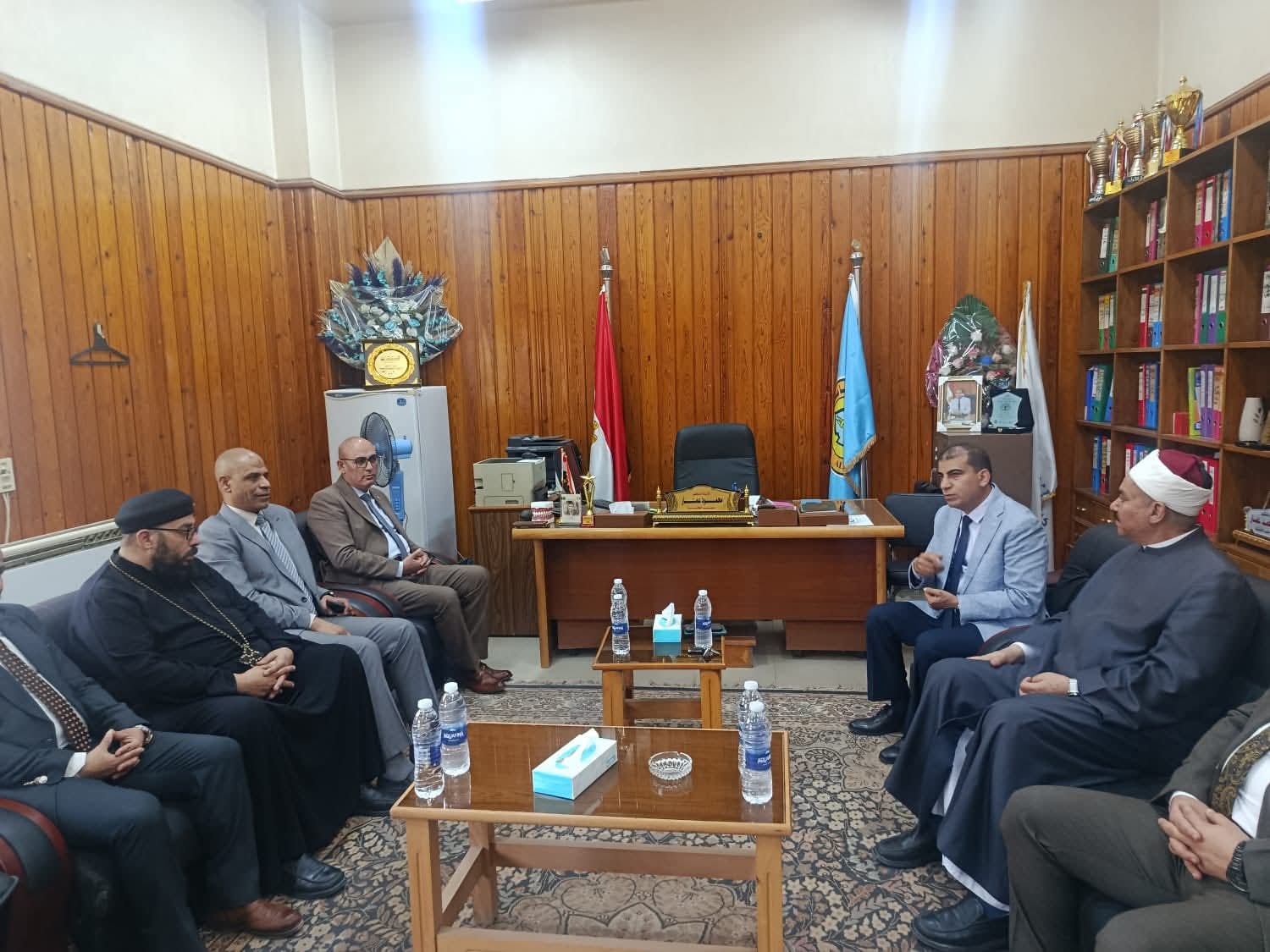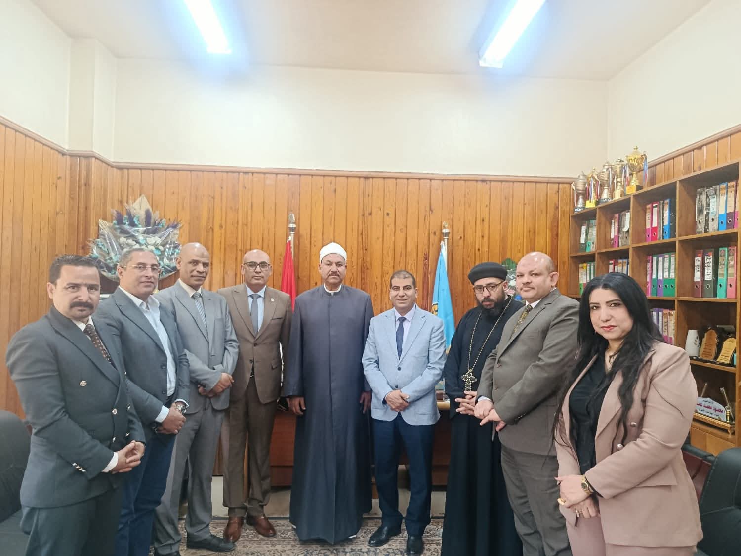 ورحب الأستاذ الدكتور محمود عمار بالوفد الكريم، ناقلاً تحيات فضيلة الأستاذ الدكتور محمد عبد المالك، ومعرباً عن سعادته بهذه الزيارة التي تعكس عمق الدور الوطني الذي يقوم به بيت العائلة المصرية في ترسيخ قيم التماسك المجتمعي، والحفاظ على وحدة النسيج الوطني، والتدخل الإيجابي لحل المشكلات قبل تفاقمها.