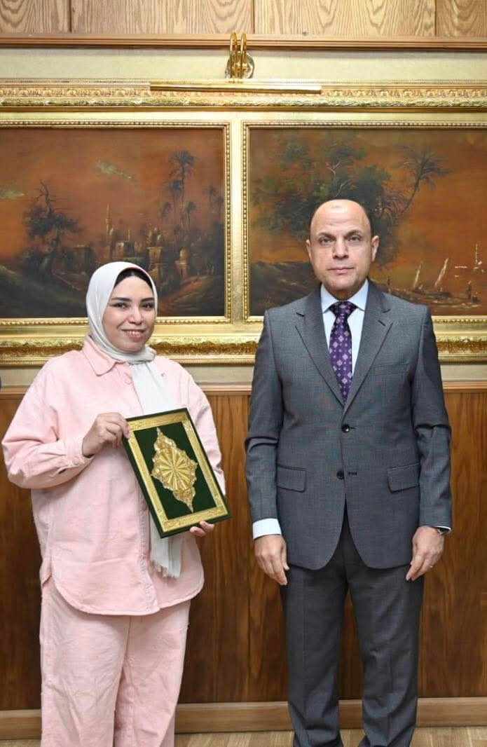 وفي الختام كرم المحافظ 14 سيدة من السيدات المتفوقات ضمن مشروع المرأة المعيلة للتمكين الاقتصادي، حيث تفقد المحافظ عددًا من المنتجات والمشروعات الصغيرة التي نفذتها المشاركات، والتي تنوعت بين خياطة المفروشات، والتطريز اليدوي، وصناعة السجاد النصف آلي، والطباعة على الأواني، ومنتجات الراتنج "الريزن"، مشيدًا بما قدمته السيدات من نماذج ناجحة تؤكد قدرة المرأة على إدارة مشروع منتج وتحقيق دخل مستدام.